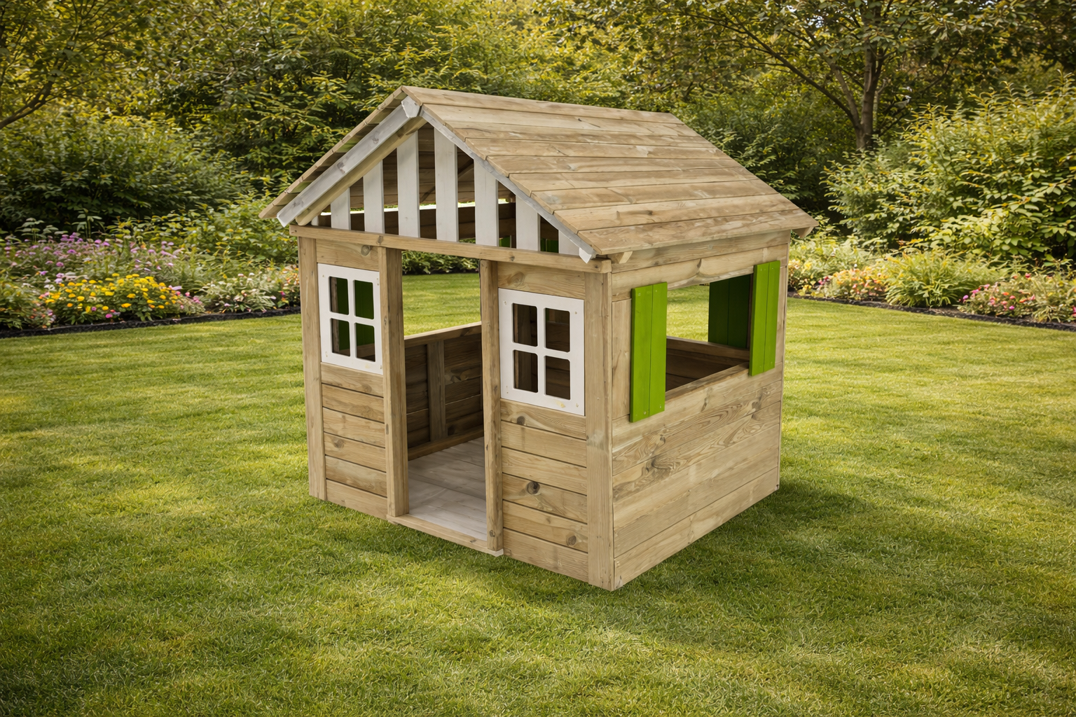 Casita de Madera KidsClub XL HORECA Verde – Homologada para Uso Público (EN 1176 / EN 1177)