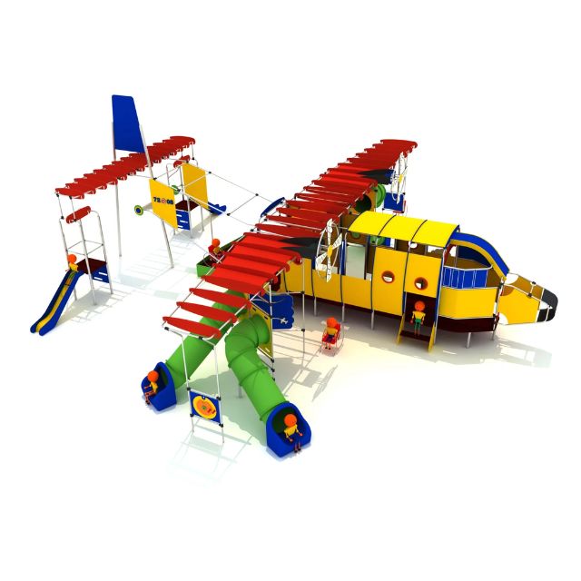 El modelo El Huracán ha sido proyectado para centros que no admiten compromisos en calidad. Su estructura de gran tamaño organiza el juego en un circuito de exploración que imita la cabina, las alas y el cuerpo de un avión, permitiendo que los niños desarrollen su imaginación, comunicación y motricidad gruesa en un entorno que cumple con todas las normativas de homologación para uso público.