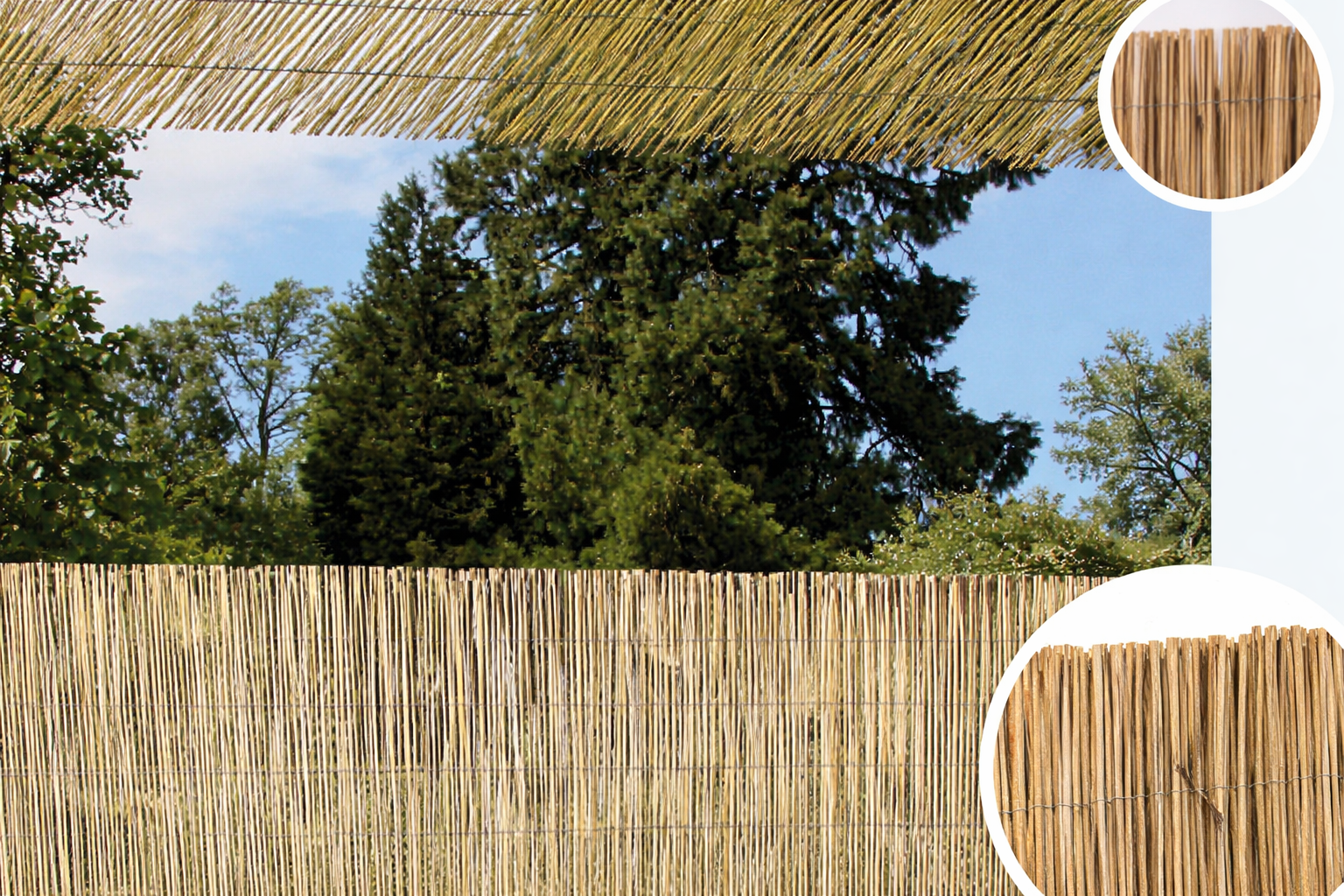 Simplicidad y claridad natural. El Reedcane es un cerramiento fabricado con cañas de bambú natural pelado, seleccionadas por su uniformidad y ligereza. Unidas mediante un discreto alambre plastificado, estas cañas ofrecen una ocultación sutil y una estética muy limpia, ideal para transformar balcones, barandillas o crear sombras ligeras con un aire fresco y mediterráneo.