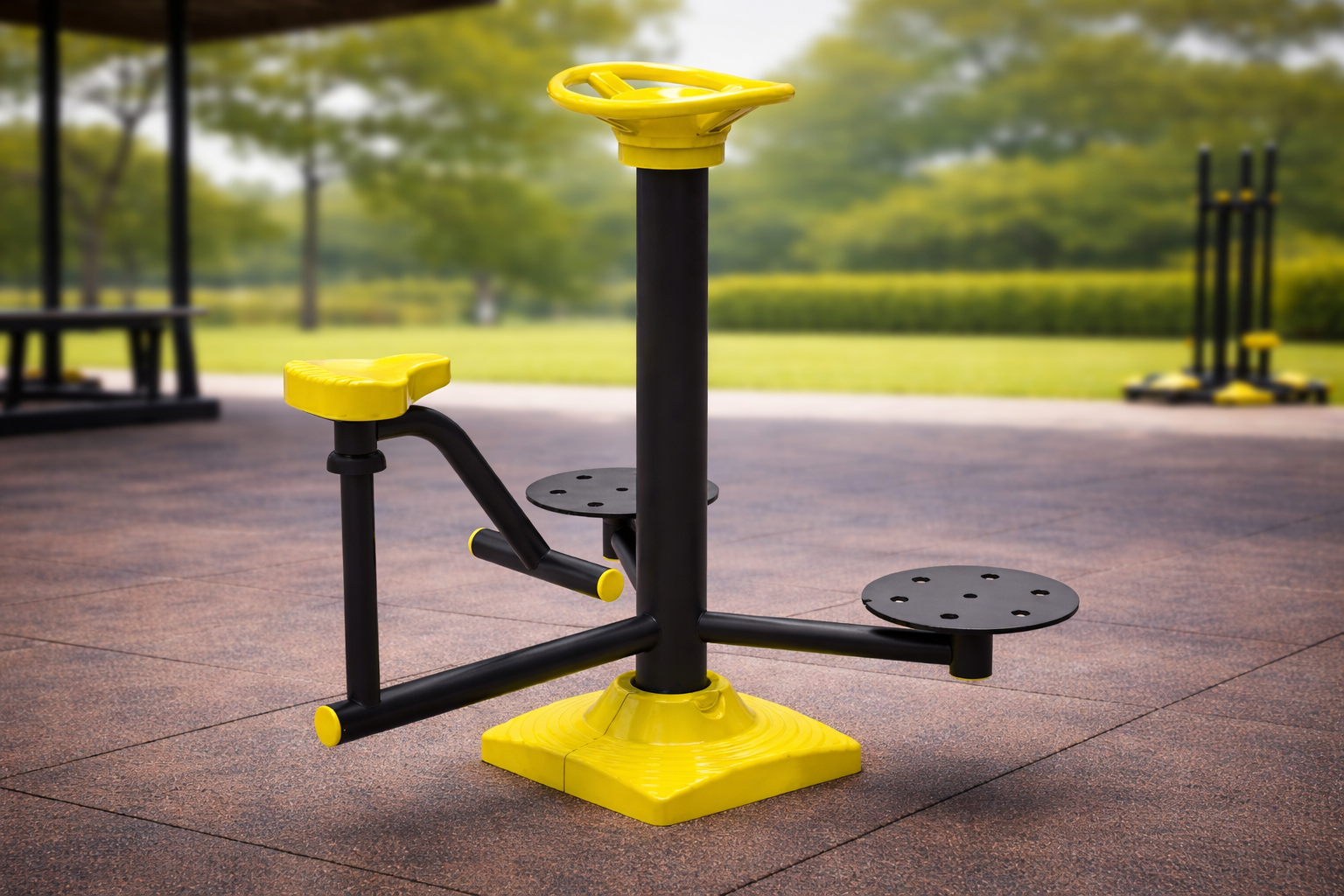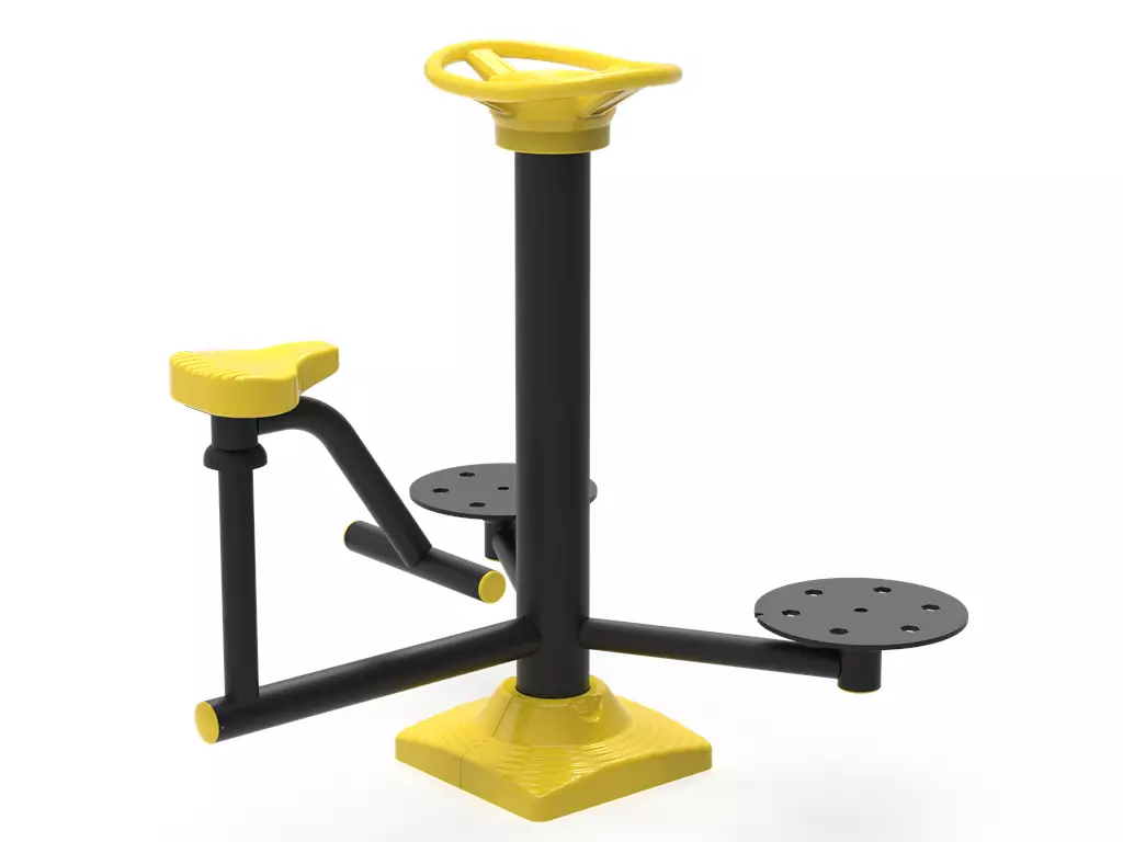 ¡Pedalea y activa tu cuerpo al completo bajo el sol! La Bicicleta Biosaludable PSF-08 redefine el concepto de ejercicio aeróbico en el exterior. Su diseño único combina una bicicleta de pedaleo fluido con un volante giratorio superior, permitiendo fortalecer piernas y glúteos mientras se trabaja la flexibilidad de hombros y brazos. Fabricada en acero galvanizado de alta densidad, esta máquina es inmune a la corrosión y los rayos UV. Con su asiento ergonómico antideslizante y su llamativo acabado en negro y amarillo, ofrece un entrenamiento de bajo impacto ideal para rehabilitación, gimnasia de mantenimiento y fitness urbano. Es el complemento indispensable para cualquier circuito de salud que busque maximizar la funcionalidad en un espacio compacto de solo 1 metro.