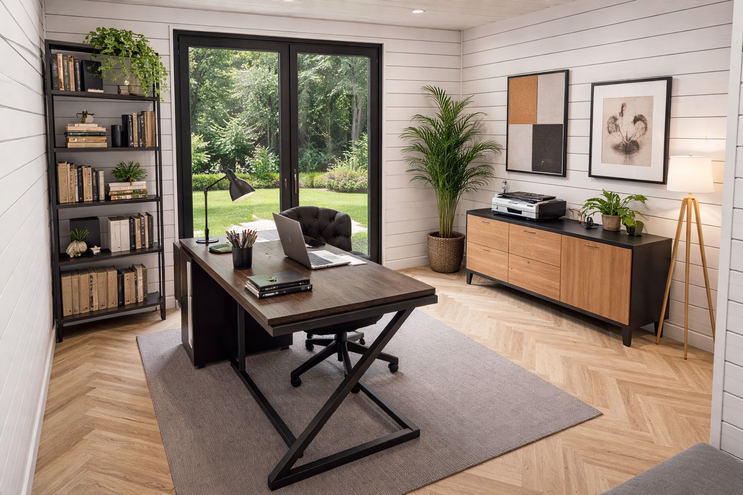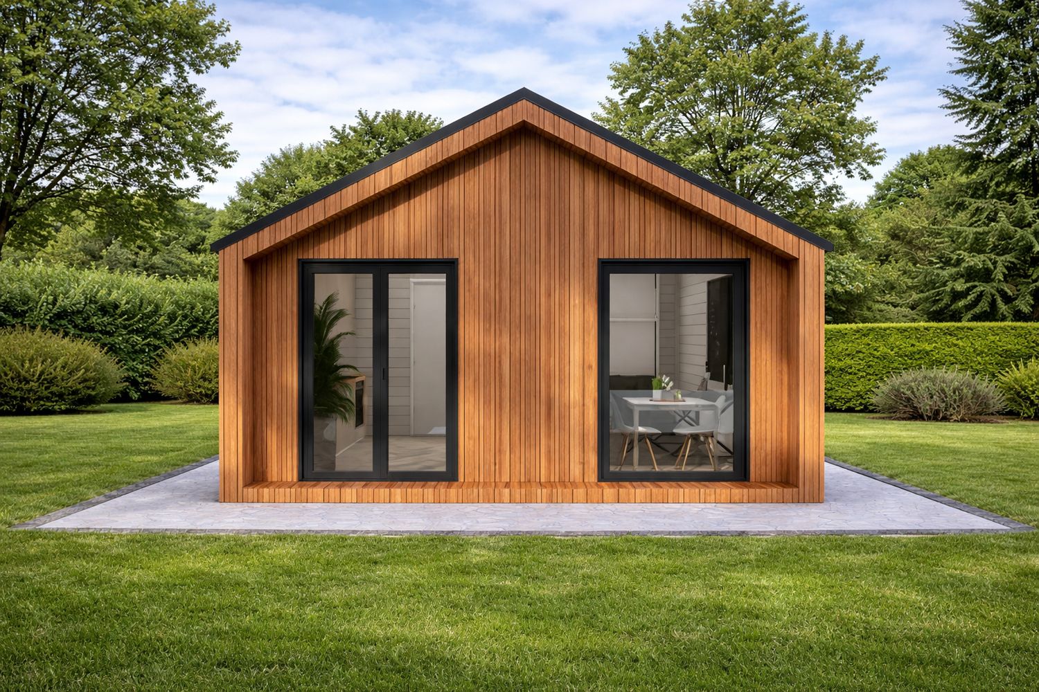 El modelo Estudio Híbrido 5,2 x 5,5 m redefine el concepto de anexo de jardín. Su generosa superficie diáfana permite una versatilidad de uso sin precedentes, eliminando las limitaciones de las casetas convencionales gracias a su altura, luminosidad y aislamiento de grado residencial.