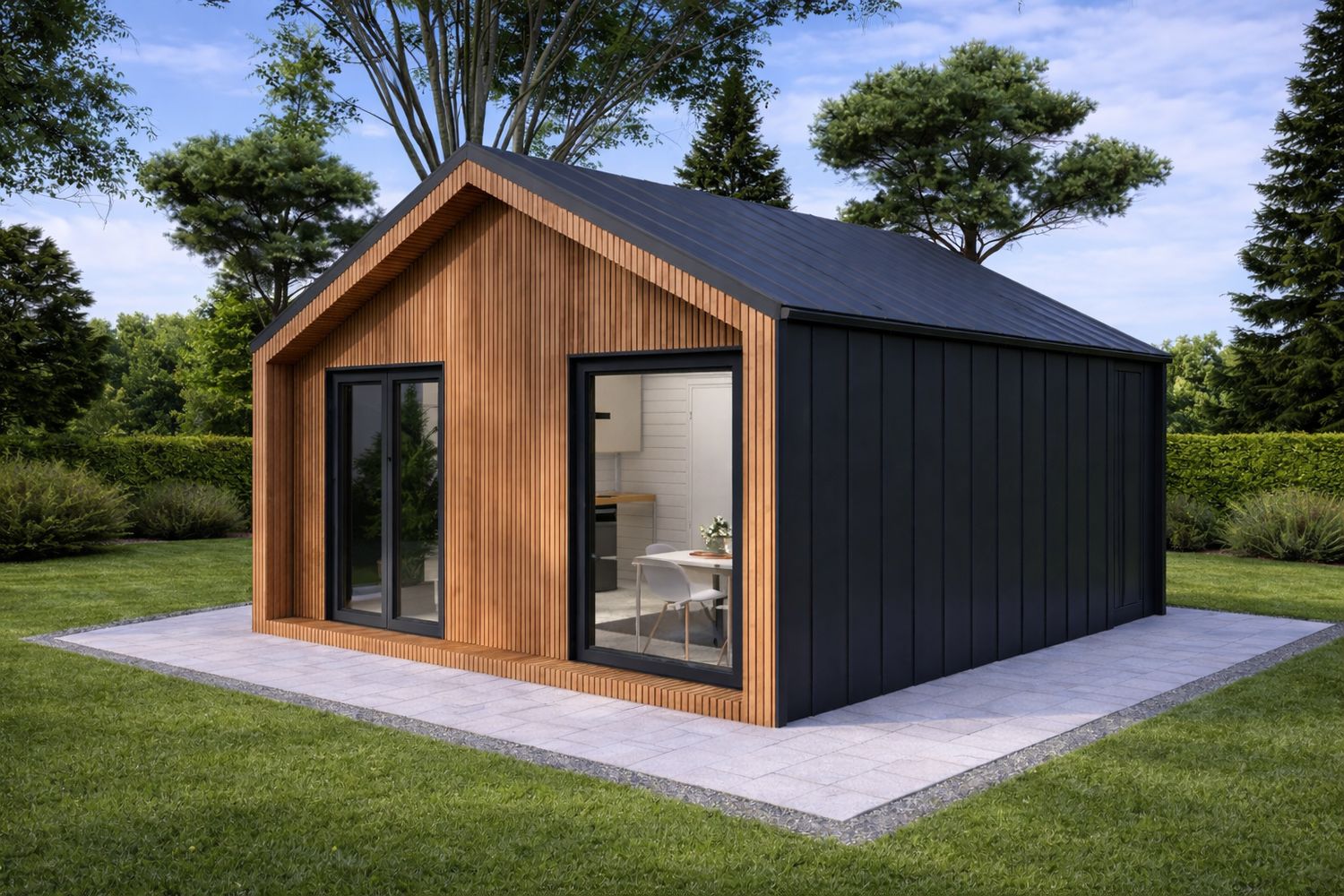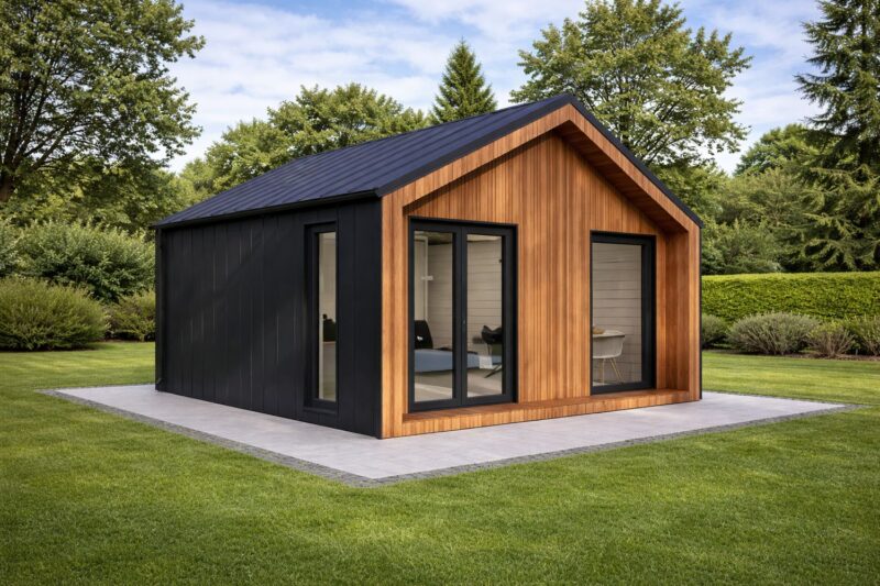 El estudio de alto rendimiento definitivo. La Cabaña de Madera Tipo Estudio Híbrida (5,2 × 5,5 m) es una solución arquitectónica de vanguardia diseñada para quienes exigen un espacio de trabajo o vida con estándares de vivienda pasiva. Con un aislamiento integral de 100 mm y una envolvente técnica que combina acero de bajo mantenimiento con la nobleza del pino termotratado, este estudio ofrece una eficiencia térmica excepcional en cualquier estación. Equipada con carpintería uPVC alemana en gris antracita y un interior de pino escandinavo certificado FSC, la Serie Estudio es el lienzo perfecto para un gimnasio boutique, una oficina corporativa de jardín o un loft de invitados con un diseño industrial-orgánico inigualable.