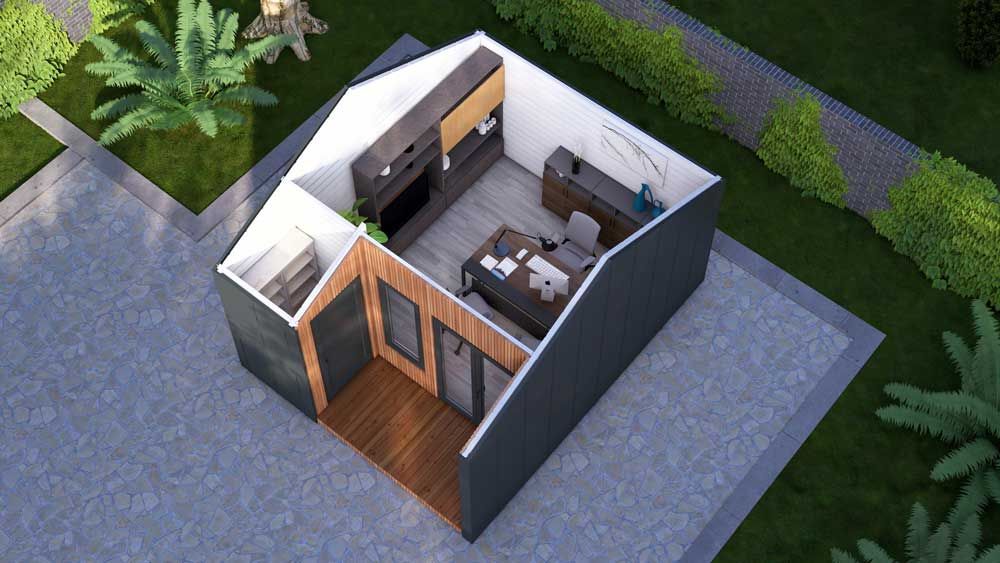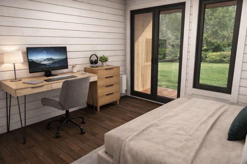 La Cabaña ARIA ha sido diseñada para quienes buscan una extensión de su hogar que no se sienta como una «caseta», sino como una edificación moderna y tecnológica. Su geometría cuadrada de 4×5 m o 5×5 m es ideal para crear ambientes polivalentes donde la eficiencia energética y el silencio acústico son los protagonistas.