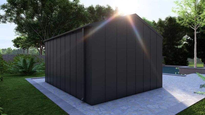 Canalones y Techo Metálico: El sistema de cubierta se integra perfectamente con los bajantes incluidos, asegurando que la estructura permanezca seca y protegida.