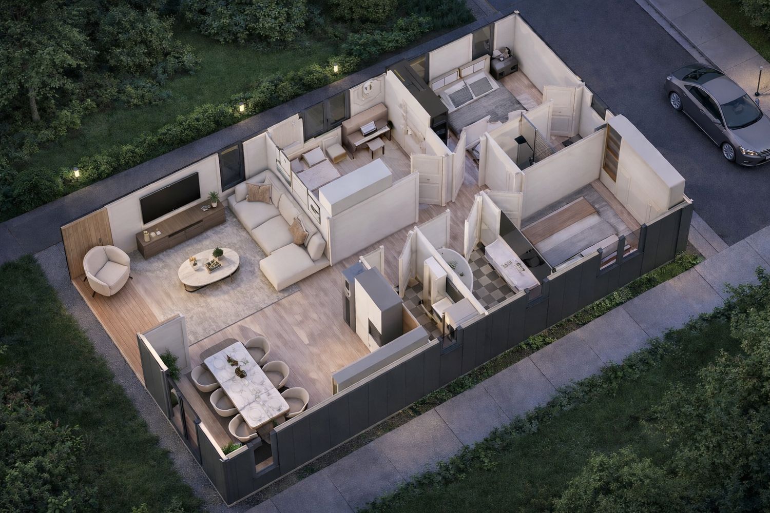 Uso Recomendado: Por sus dimensiones y sus tres dormitorios, la Tipo A de 7 x 12,5 m es ideal para Familias que buscan teletrabajar desde un entorno natural, o para inversores que deseen crear un Resort Boutique de Alta Gama con unidades residenciales de lujo que no requieran mantenimiento anual.