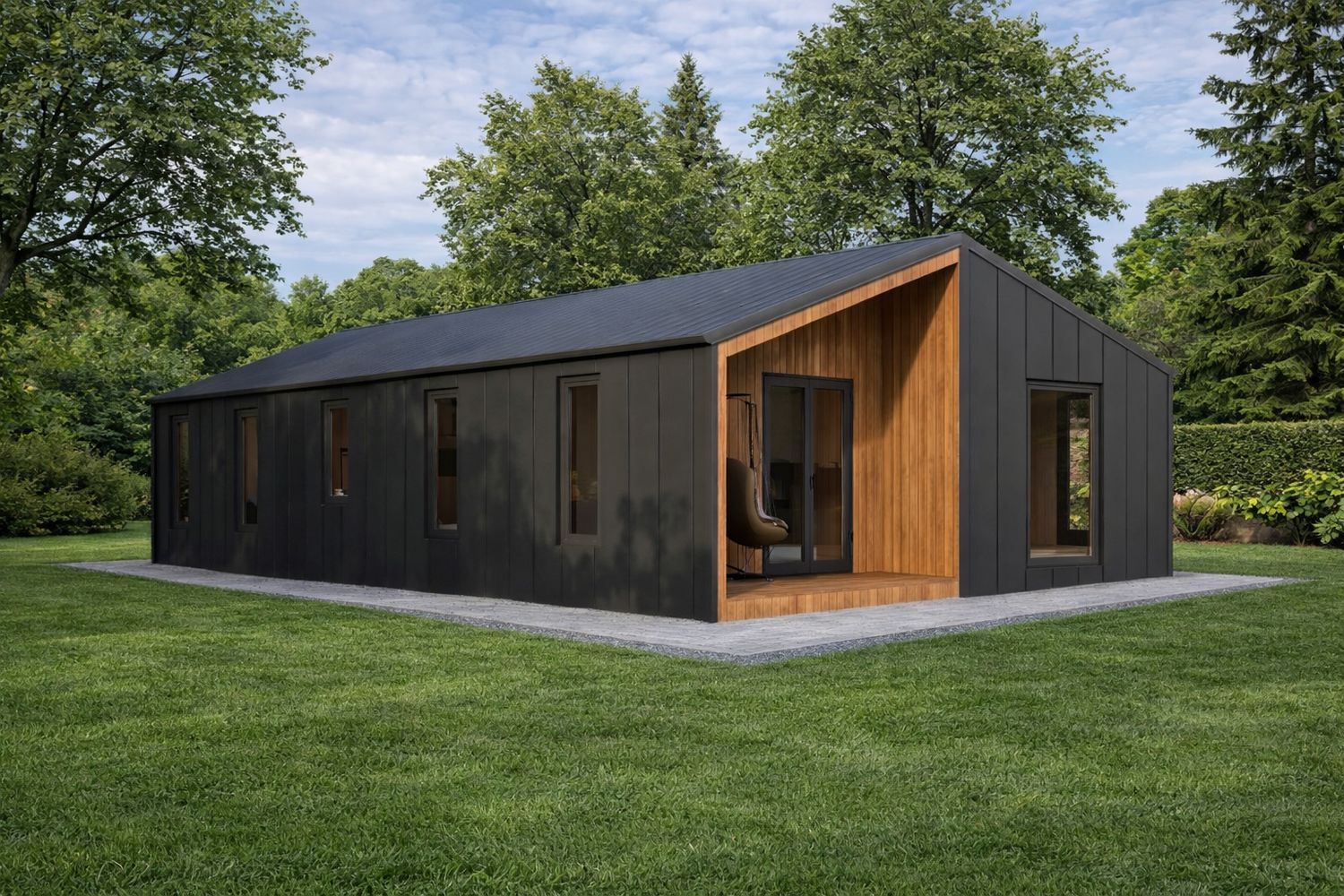 • Membranas Técnicas Activas: Incorpora láminas transpirables e impermeables que protegen la estructura de pino escandinavo FSC de la condensación y el viento, asegurando una durabilidad de décadas sin degradación estructural.