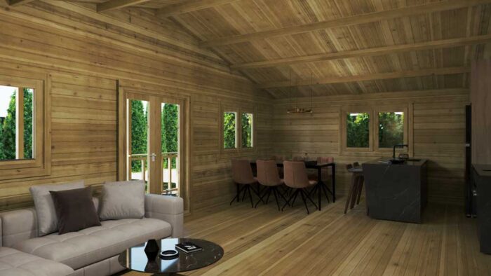 Aislamiento de 100 mm en Suelo y Techo (GRATIS): Un paquete valorado en 5.100 € que convierte la cabaña en una fortaleza térmica, manteniendo el calor en invierno y el frescor en verano con un consumo energético mínimo.
