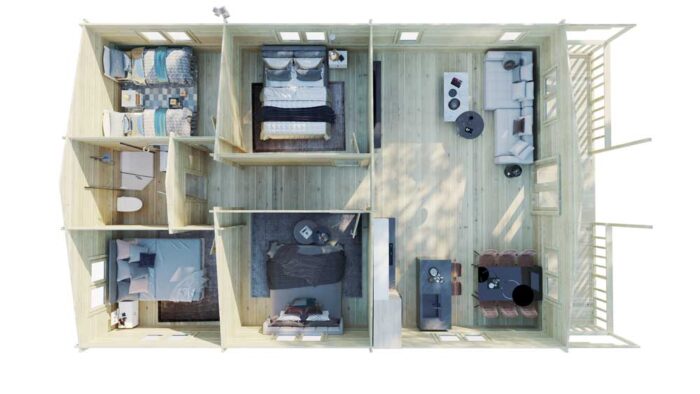 La Cabaña de Madera de 8,0 m × 13,5 m representa la máxima expresión de la arquitectura en madera de Korahabitat.com. Con una planta generosa y equilibrada, este modelo ha sido proyectado para ofrecer una vida familiar cómoda, privada y en total armonía con el medio ambiente.