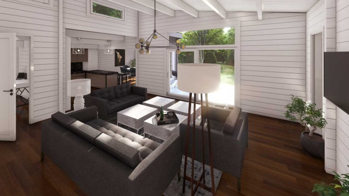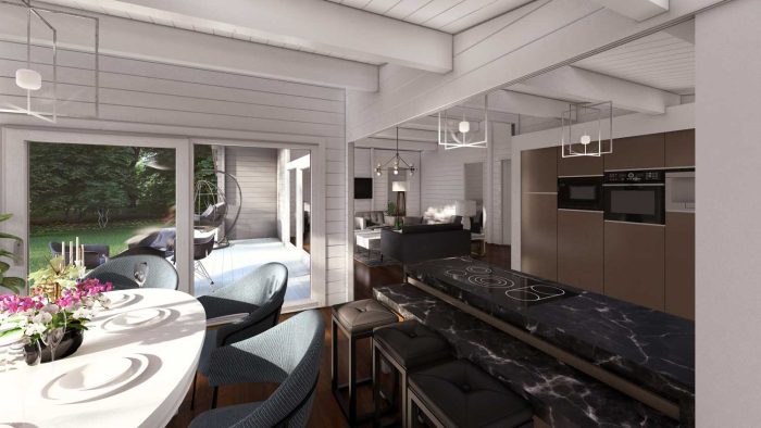 Con una planta de más de 170 metros cuadrados, esta cabaña ofrece una versatilidad arquitectónica excepcional: