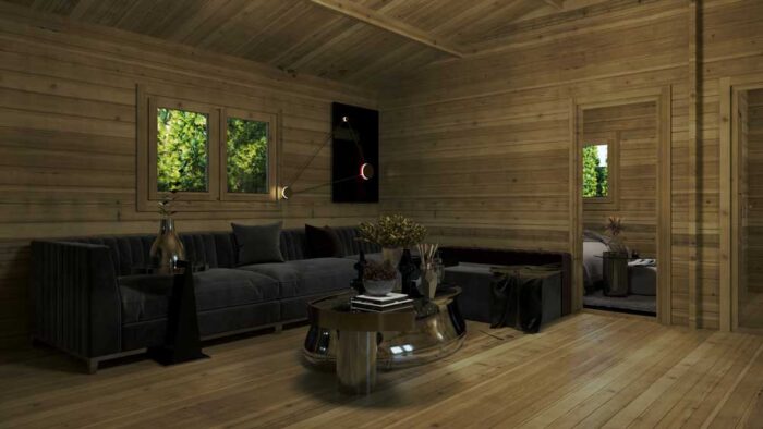 Acabado «Clean Design»: El sistema de aislamiento permite ocultar completamente las instalaciones eléctricas, logrando paredes de madera lisas, modernas y sin cables a la vista.