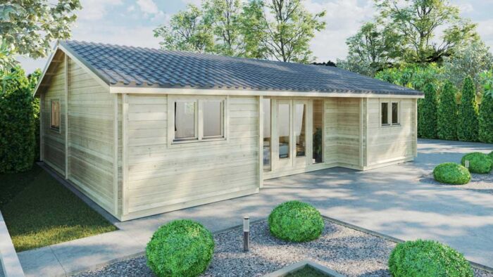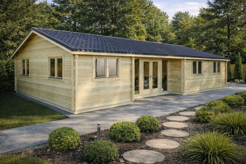 Opinión del Experto: La Cabaña Tipo C es el modelo «comodín». Su tamaño de 70 $m^2$ es el más demandado por inquilinos de larga estancia y plataformas vacacionales, lo que garantiza un retorno de inversión (ROI) rápido y constante.