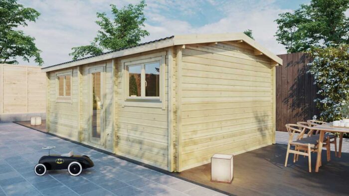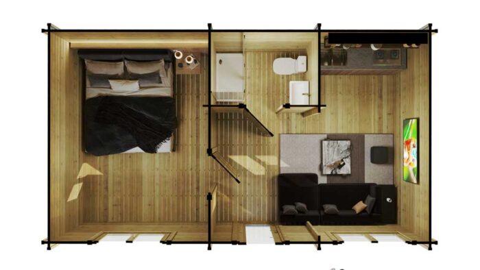 Luz y amplitud en el formato de 1 dormitorio más equilibrado. La Cabaña de Madera Tipo D (7,0 m × 4,0 m) es la solución residencial de 28 m2 diseñada para quienes valoran un diseño diáfano y una estética contemporánea. Fabricada con tronco macizo escandinavo de 45 mm, este modelo destaca por su excelente relación calidad-precio, incluyendo de serie un paquete de extras valorado en 2.340 €, que comprende tejas de acero, aislamiento de suelo de 100 mm y carpintería premium tipo vivienda. Ya sea como una vivienda habitual compacta, una suite de invitados de lujo o un activo para alquiler turístico, la Tipo D ofrece un refugio cálido, seguro y con 10 años de garantía.
