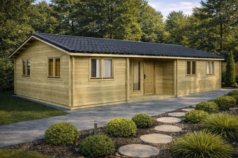 Eficiencia residencial en formato panorámico. La Cabaña de Madera Tipo E (11,0 m × 6,0 m) es la solución perfecta de 2 dormitorios para quienes necesitan una vivienda funcional que se adapte a parcelas estrechas o limitadas. Con una planta de 66 m2 diseñada para maximizar la luz natural, este modelo ofrece una robustez excepcional gracias a su construcción en tronco macizo escandinavo. Incluye de serie un paquete de extras de alto valor, destacando las tejas de acero y el aislamiento de suelo de 100 mm (ahorro de 3.530 €). Es la inversión maestra para una vivienda habitual compacta, una casa de invitados premium o un activo de alquiler vacacional con costes de mantenimiento mínimos.