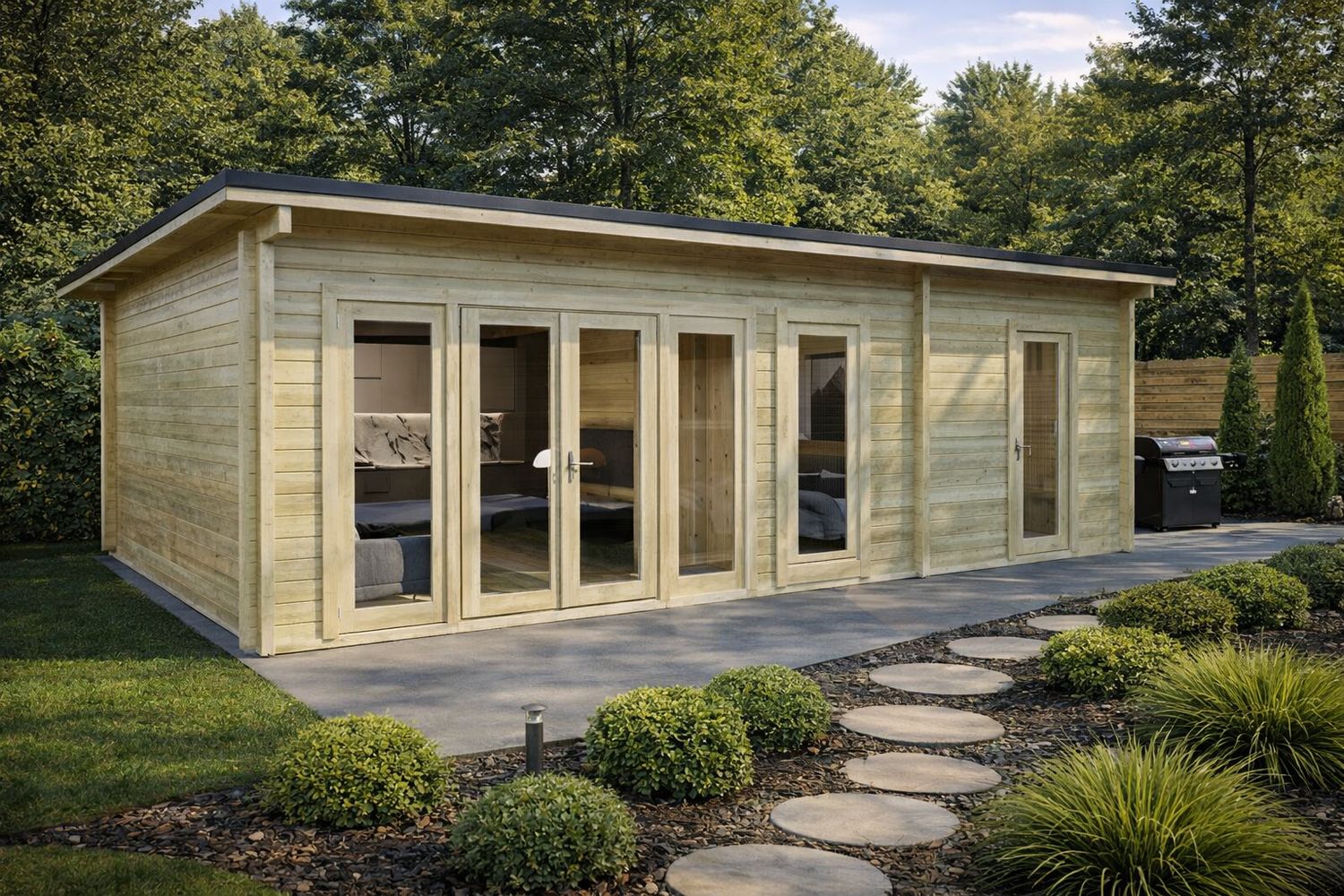 Sugerencia de Uso: La Cabaña Tipo E es la elección ganadora para crear una oficina de jardín con zona de descanso, un alquiler vacacional (Airbnb) de alta rentabilidad o una vivienda auxiliar para familiares, ofreciendo una de las mejores ratios de retorno de inversión del mercado.