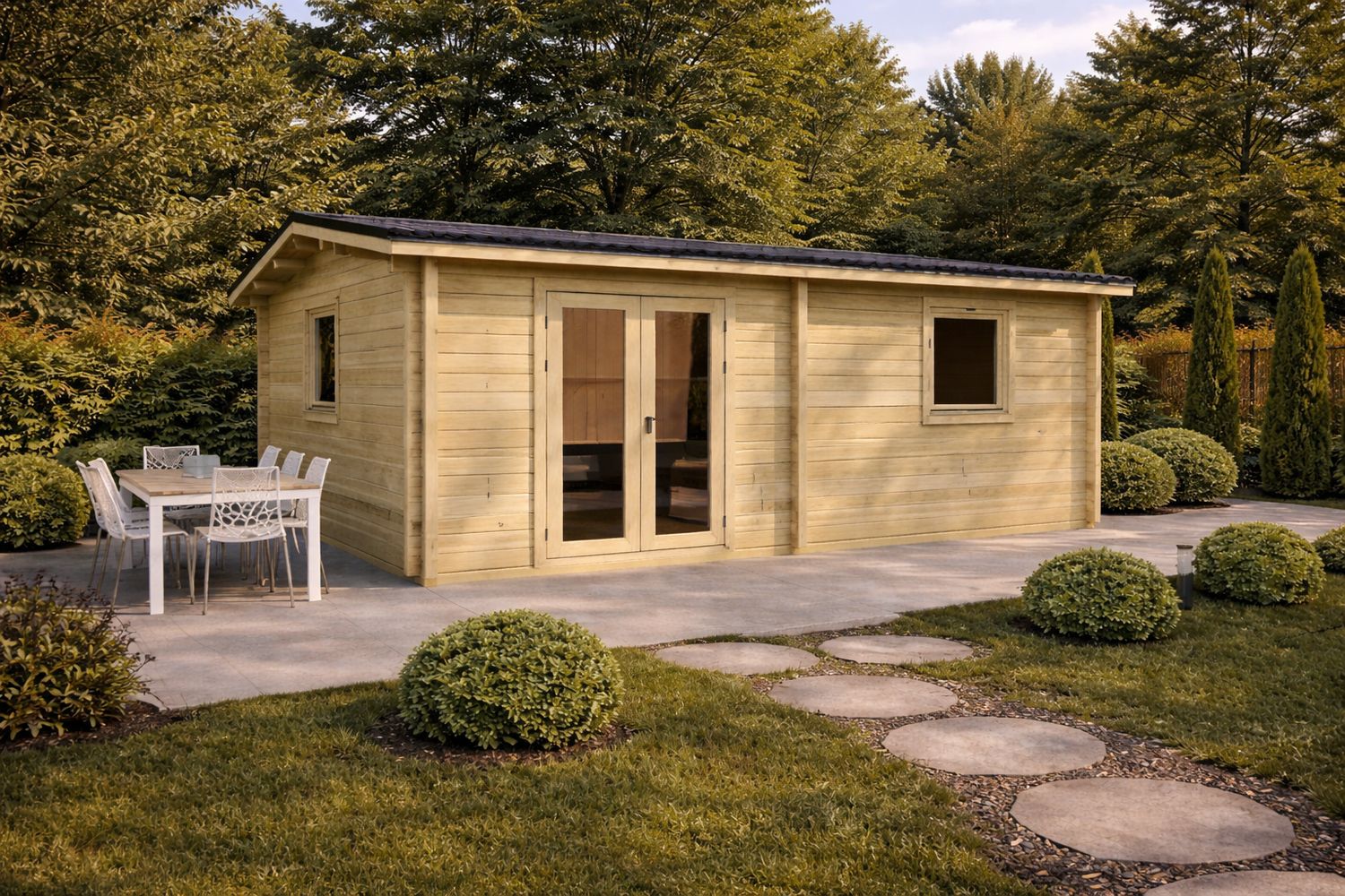 Funcionalidad residencial en menos de 30 m2. La Cabaña de Madera Tipo D (5,8 m × 5,0 m) es la respuesta perfecta para quienes buscan un espacio independiente, cálido y extremadamente eficiente. Diseñada por korahabitat.com para maximizar parcelas pequeñas, este modelo de 1 dormitorio destaca por incluir un paquete de mejoras críticas sin coste adicional: aislamiento de 100 mm en suelo y techo, además de una actualización gratuita a tejado de acero (ahorro total de 2.320 €). Fabricada con tronco macizo escandinavo de 45 mm, es la inversión ideal para una oficina de jardín premium, una casa de invitados acogedora o un alojamiento vacacional de bajo mantenimiento y alta durabilidad.