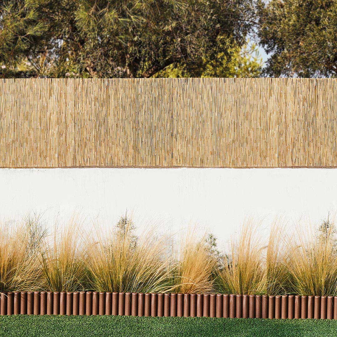 Tradición y ligereza en armonía. El Cañizo Mediterráneo Slim está confeccionado con cañas naturales de varilla media, ofreciendo un acabado más fino y estilizado que el modelo estándar sin perder la resistencia de la caña entera. Es la solución perfecta para sombreados decorativos y ocultación perimetral en espacios que buscan una estética natural, fresca y muy manejable.