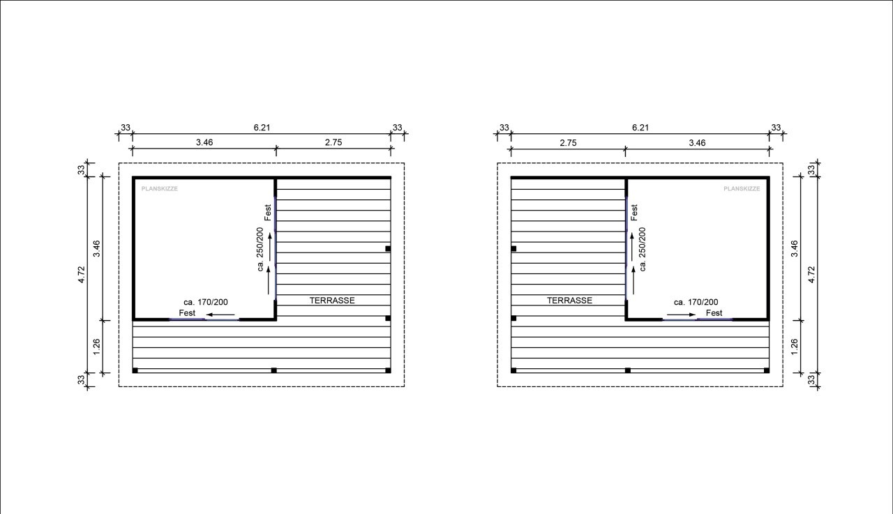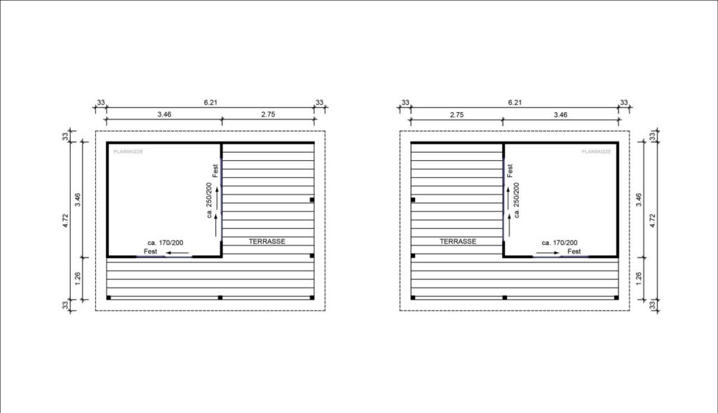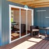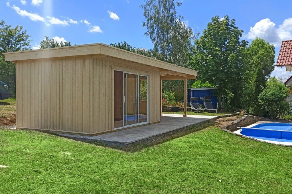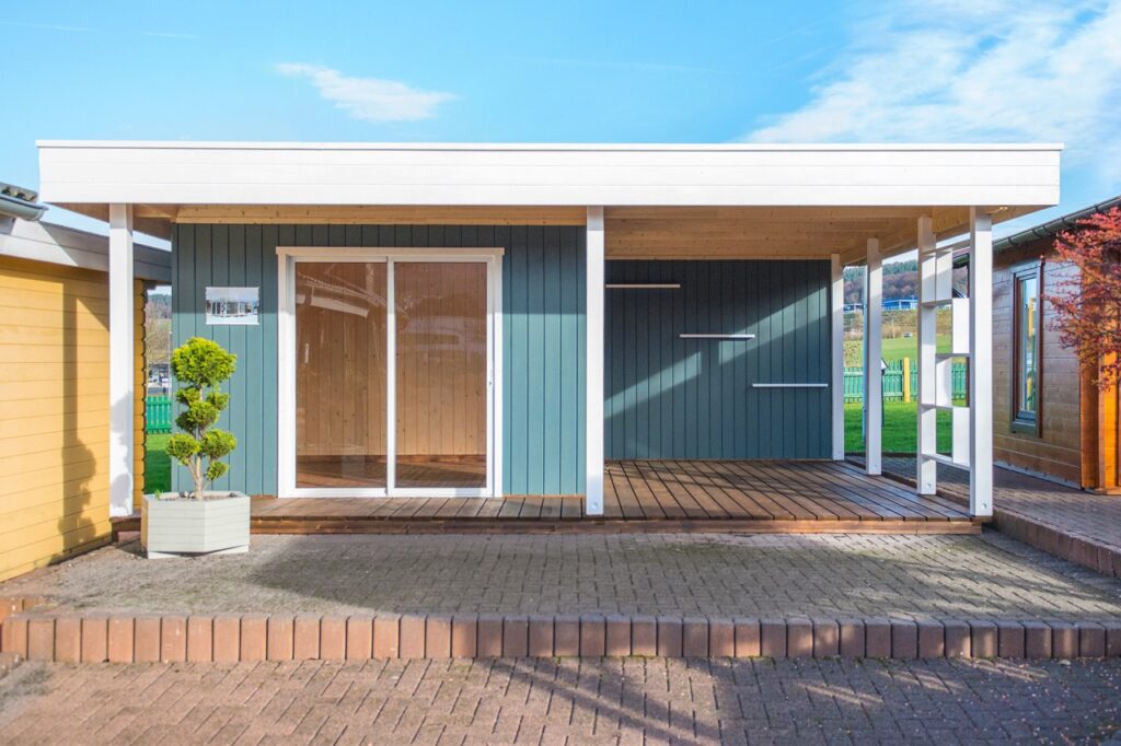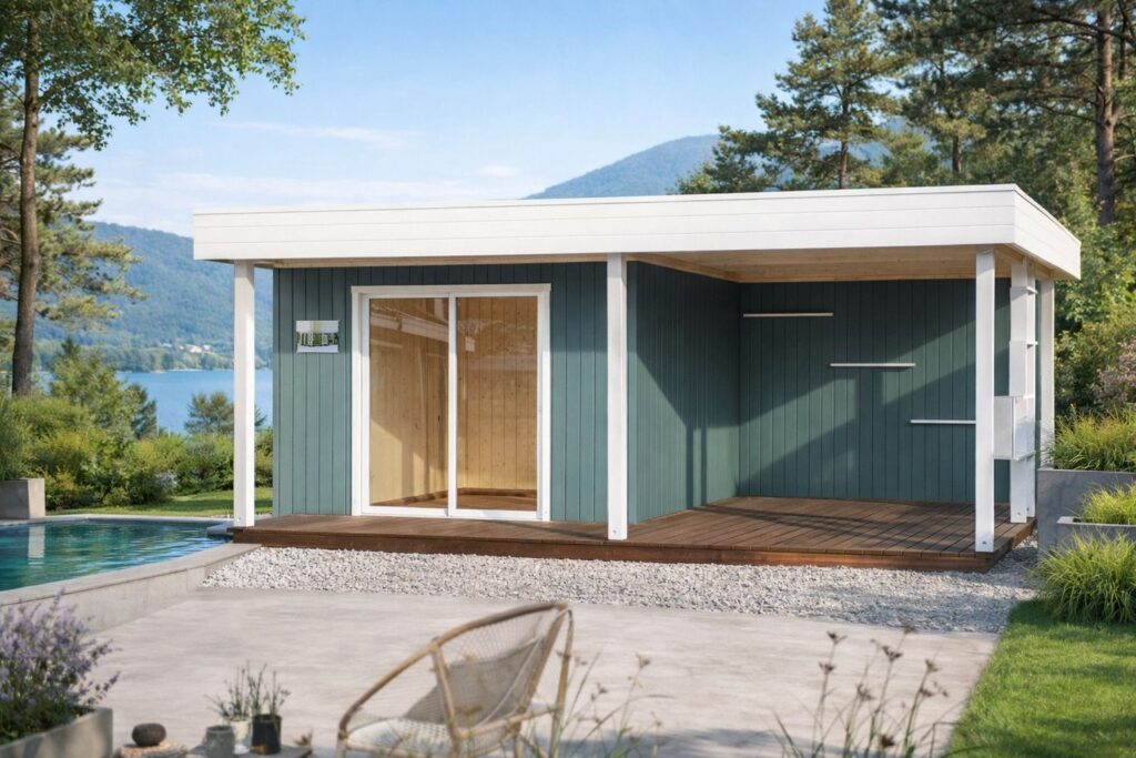 El lujo de vivir el exterior. La Caseta de Jardín CARIBE (6,20 × 4,72 m) es una pieza de arquitectura minimalista diseñada para quienes buscan un refugio sofisticado y funcional. Su estructura única combina un salón interior de 12 m² con una espectacular terraza cubierta integrada, todo bajo un mismo techo plano de líneas limpias. Fabricada en abeto nórdico de 45 mm y equipada con exclusivas puertas correderas de aluminio, la CARIBE inunda su interior de luz natural mientras ofrece un porche monumental protegido del sol y la lluvia. Es el espacio definitivo para un salón chill-out, un estudio de diseño o el epicentro de sus reuniones en el jardín.