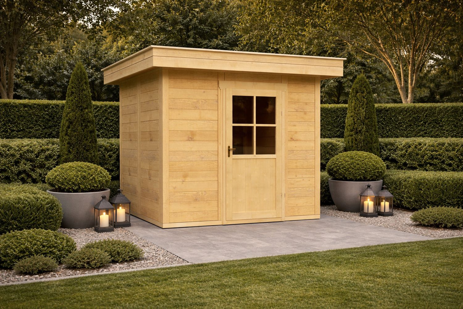 Vanguardia y robustez en formato cuadrado. La Caseta de Madera Bruma Natural (2,24 x 2,24 m) es la respuesta moderna al almacenamiento exterior. Con un elegante diseño de techo plano y fabricada en abeto nórdico macizo, es de los pocos modelos compactos que ofrece la opción de 30 mm o 45 mm de grosor de pared. Su estética contemporánea se combina con la máxima seguridad al prescindir de ventanas laterales, ofreciendo un refugio privado, luminoso y ultraestable con suelo de madera incluido. La elección premium para jardines actuales que buscan funcionalidad sin romper la línea arquitectónica.