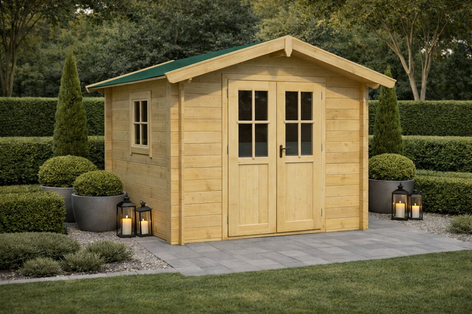 El clásico que nunca falla en su jardín. La Caseta de Madera Colina (230 x 200 cm) combina la estética tradicional del techo a dos aguas con la robustez del abeto nórdico de 30 mm. Perfecta para espacios compactos, esta cabaña ofrece un acceso inmejorable gracias a su amplia puerta doble acristalada y una ventana fija que inunda el interior de luz natural. Con suelo de madera incluido y un montaje preciso mediante lamas machihembradas, es la solución de almacenamiento más equilibrada y duradera para su equipamiento exterior.