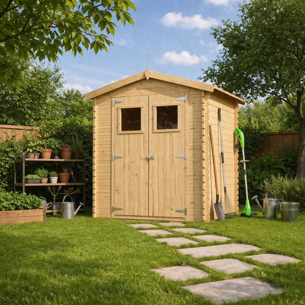 La solución de almacenamiento más versátil y accesible. El modelo Classic Garden de 1,98 m² destaca por su práctica doble puerta frontal, ideal para maquinaria ancha y herramientas de gran volumen. Fabricada en pino nórdico/abeto de 19 mm, ofrece una estructura robusta y estética. Configuración flexible: elige recibirla con nuestro suelo de madera impregnada de alta resistencia o instálala directamente sobre tu propia base preparada.