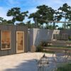 Uso Recomendado: Por su excelente aislamiento y diseño vertical, la Caseta Prado es la elección número uno para una «Garden Office» boutique o un estudio de yoga, donde la estética exterior es tan importante como el confort interior.