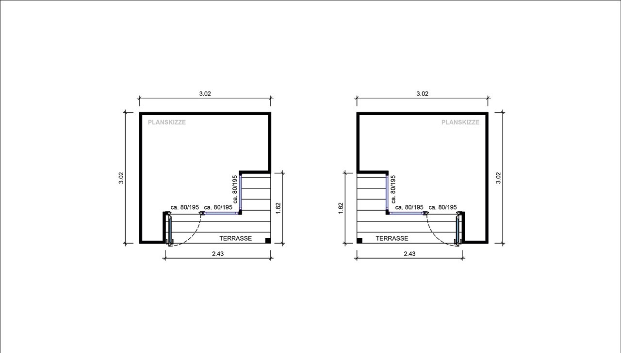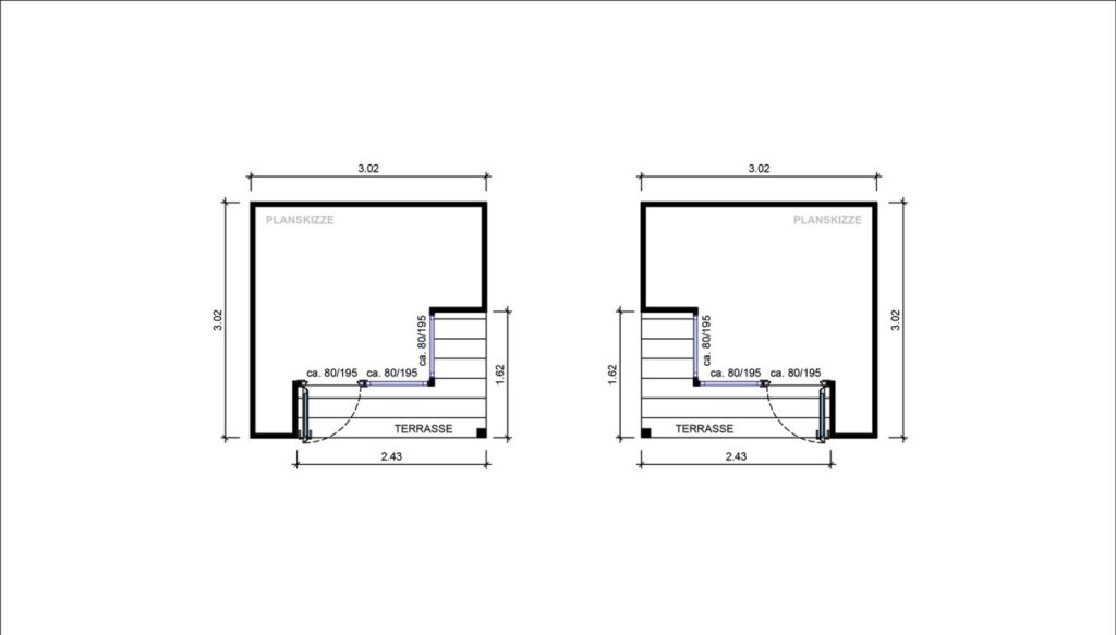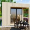 Incorpora una terraza de 30 mm sobre bastidor impregnado, creando una plataforma elegante que protege la entrada y sirve como espacio exterior funcional.