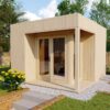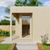 Arquitectura de cristal para su jardín. La Caseta de Madera Prado es la definición de modernidad y eficiencia espacial. Disponible en tamaños desde 3,02 hasta 4,64 metros, este modelo destaca por su imponente fachada acristalada de suelo a techo y su elegante techo plano de 2,52 m de altura. Fabricada en abeto nórdico de 45 mm mediante un avanzado sistema de marco que garantiza una estabilidad estructural superior, la Prado no es solo una caseta: es un estudio panorámico inundado de luz natural. Incluye vidrio aislante térmico y una terraza de abeto de 30 mm, convirtiéndose en el refugio contemporáneo perfecto para el teletrabajo, el arte o el relax absoluto.
