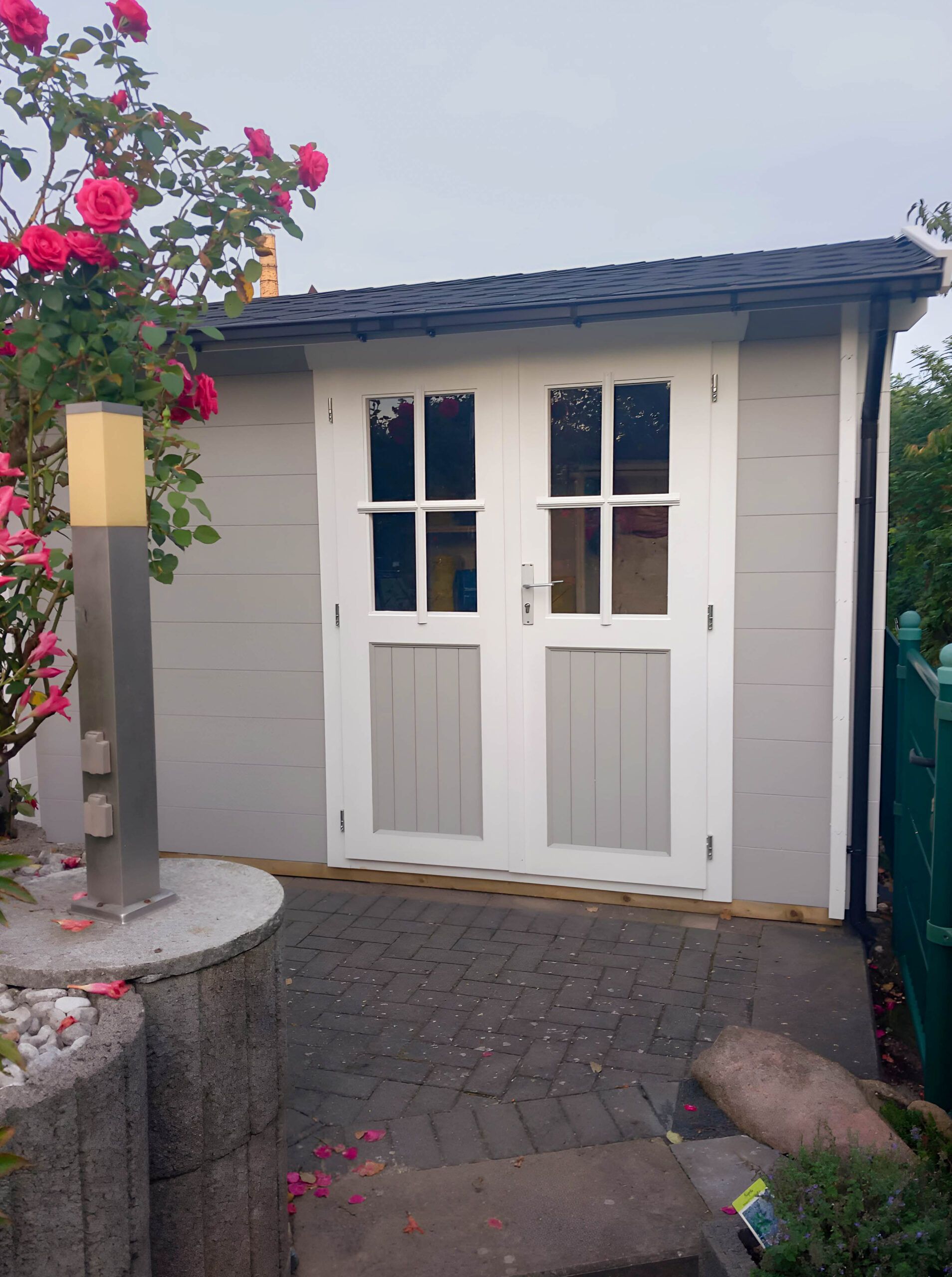 Con unas dimensiones de 140 x 185 cm, permite el acceso de objetos de gran volumen como cortacéspedes de asiento o mobiliario de terraza. Incluye cerradura de seguridad y cristales auténticos.