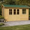 Suelo y Base Protegida: Se suministra con un bastidor base impregnado que aísla la estructura de la humedad ascendente, junto con tableros cepillados de 20 mm que forman un suelo firme y resistente.