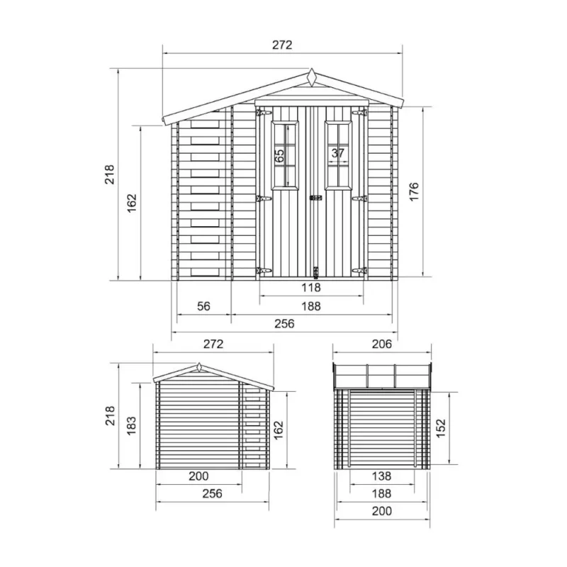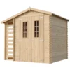 Robustez Nórdica: Paredes de 19 mm en pino nórdico y abeto, maderas seleccionadas por su excelente resistencia mecánica y capacidad de aislamiento.