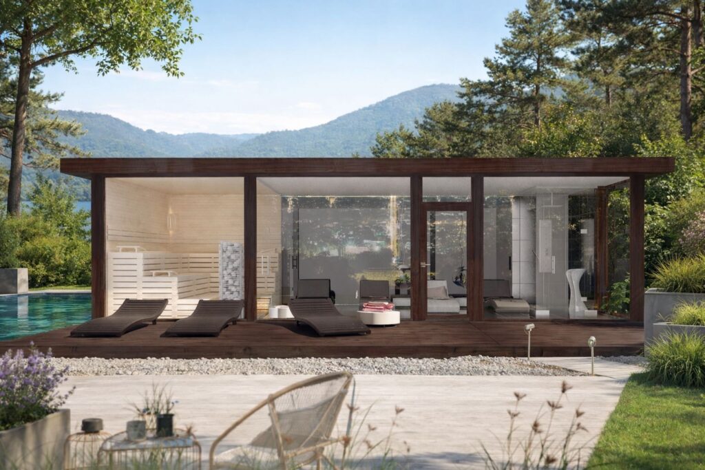 La cumbre de la arquitectura modular residencial. La Caseta de Madera Ribera Plus (8,00 × 4,00 m) no es una caseta de jardín; es una edificación de alto rendimiento térmico diseñada bajo estándares de vivienda moderna. Con un imponente muro técnico de lana de roca de 140 mm y carpintería de triple acristalamiento (Ug ≥ 0,7 W/m²K), este modelo de 32 m² ofrece un confort climático inigualable en cualquier estación. Su diseño minimalista, sus amplias puertas correderas oscilobatientes y la posibilidad de compartimentar estancias para sauna o baño, la convierten en la solución definitiva para una oficina de dirección, un estudio de invitados de lujo o una residencia secundaria de diseño.