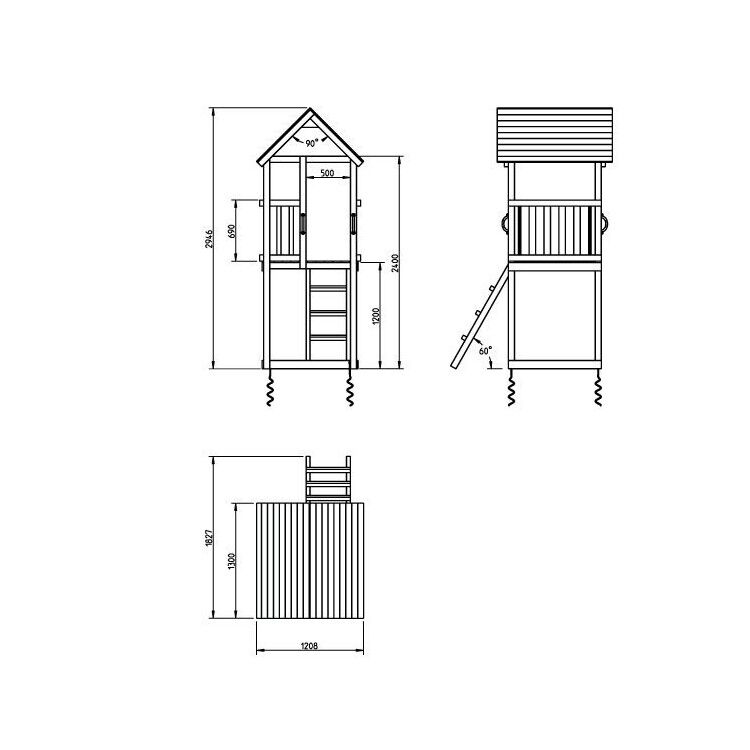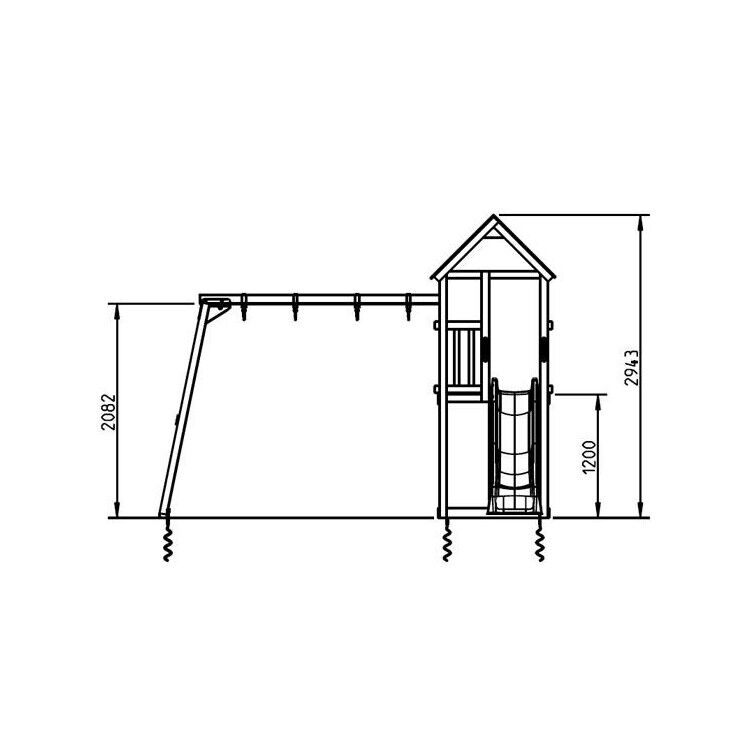Estructura Inteligente: Torre elevada con techo a dos aguas y zona inferior para arenero.