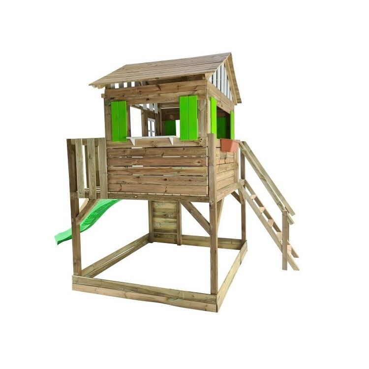 La Casita MS-6 es el refugio de altura perfecto para pequeños exploradores con grandes sueños. Este modelo destaca por su diseño de cabaña elevada compacta, que combina la calidez de la madera natural con la adrenalina de un tobogán de 2 metros y una pared de escalada con presas de colores. Con ventanas decorativas y contraventanas verdes, esta torre no solo embellece el jardín, sino que ofrece un circuito de agilidad y fuerza en un formato que se adapta a casi cualquier espacio exterior. Seguridad, estilo europeo y diversión vertical en una estructura resistente de 2,80 metros de altura.