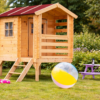 ¡Lleva la diversión a nuevas alturas! La casita Sky Adventure es un refugio elevado que combina una amplia zona interior con una terraza abierta y escalera de acceso. Fabricada en pino nórdico de 19 mm, incluye un suelo reforzado de 18 mm y tejado bituminoso rojo. Seguridad total (EN-71) para que los pequeños exploradores imaginen su propio fuerte en las nubes.