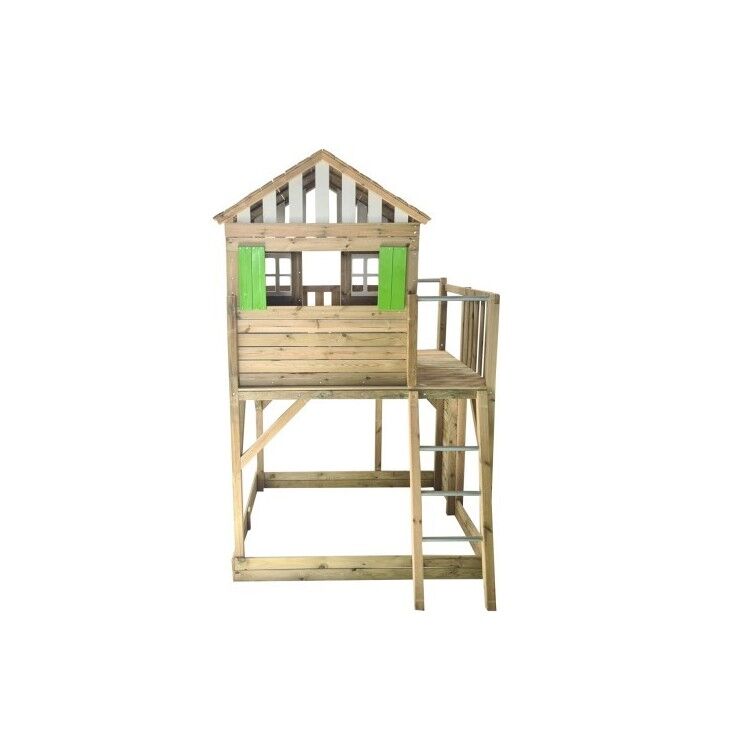 La Casita MSP-4 lleva la diversión a un nivel superior, literalmente. Con una imponente plataforma situada a 1,5 metros de altura, esta estructura ofrece una de las experiencias de juego más completas y emocionantes del mercado. Cuenta con una encantadora cabaña cerrada con ventanas y contraventanas, un tobogán ondulado extralargo y un muro de escalada con presas multicolores. Su diseño elevado libera un amplio espacio inferior de más de 7 metros de largo, ideal para crear un arenero o zona de descanso a la sombra. Fabricada en madera tratada a presión para una durabilidad extrema.