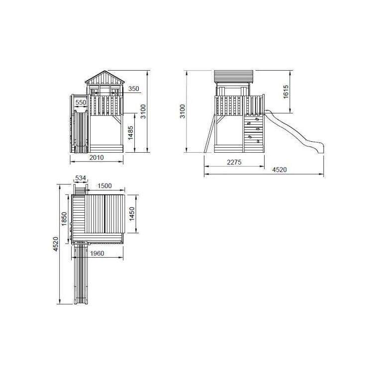| Componentes | Tobogán ondulado, Muro de escalada, Casita cerrada, Escalera |