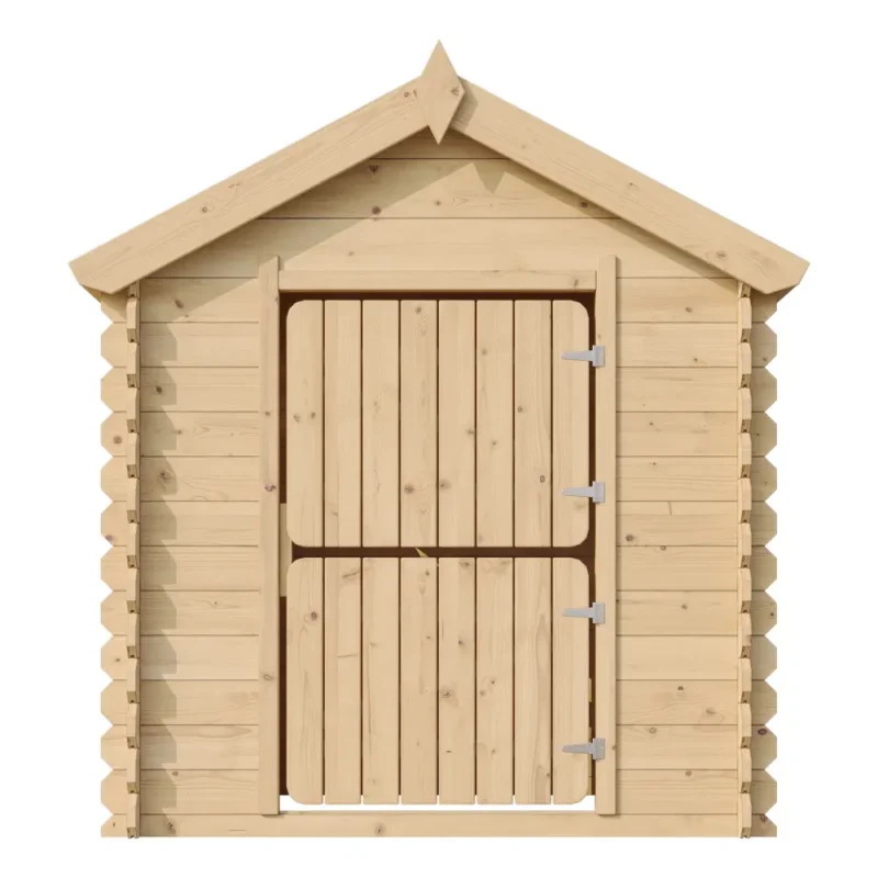 Sostenibilidad Natural: Se entrega en madera natural. Para garantizar una larga vida útil frente al clima, se recomienda tratar la madera con lasur o pintura para exteriores y añadir tejas bituminosas al tejado.