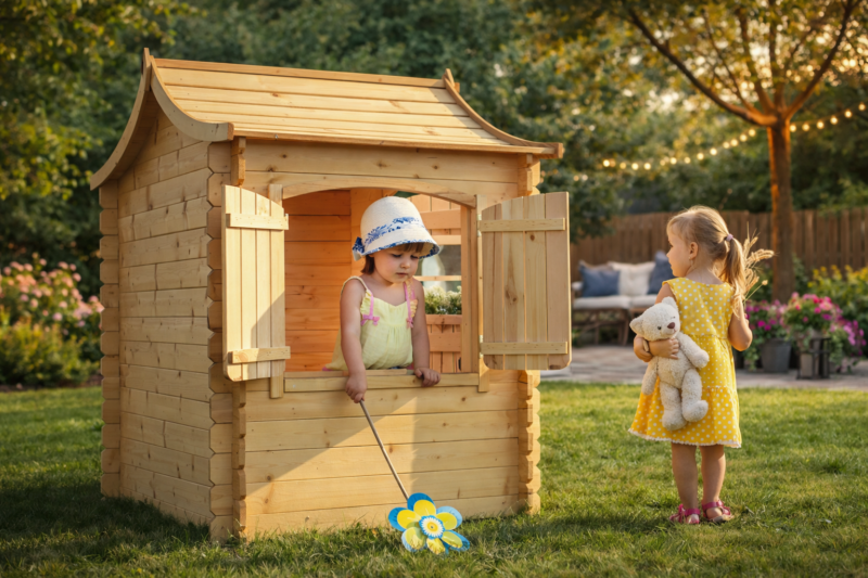 Un refugio de cuento con estilo oriental. La casita Pagoda Dreams destaca por su espectacular tejado de doble curvatura y paredes de 19 mm, ofreciendo una robustez excepcional y un diseño estético superior. Fabricada bajo la normativa de seguridad EN-71, es el espacio ideal para fomentar el juego simbólico y la imaginación al aire libre.