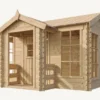 La casita TBL-23 rompe con el diseño tradicional para ofrecer una estructura más moderna y luminosa. Su gran atractivo es la ventana vertical integrada junto a la puerta, que permite una visibilidad total y una entrada de luz natural superior, creando un espacio acogedor y amplio.