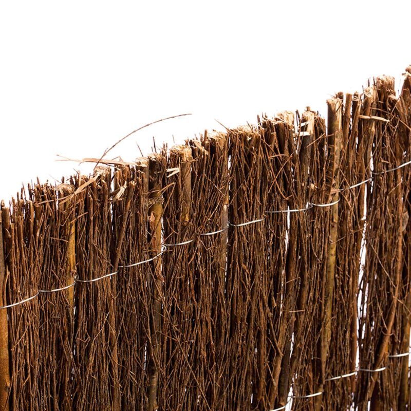 Elegancia y privacidad en perfecta armonía. El cerramiento Nature-Hybrid Brezo & Mimbre combina varillas seleccionadas de ambos materiales para ofrecer una barrera visual robusta y estética. Tejido con alambre galvanizado para garantizar una durabilidad extrema a la intemperie, este panel proporciona una ocultación máxima, convirtiendo cualquier valla o cercado en un elemento decorativo de aspecto rústico y natural.