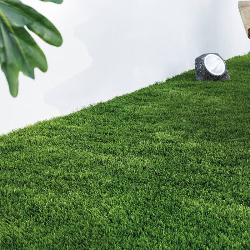 Fibras de Alta Densidad: La gran concentración de filamentos por metro cuadrado asegura una superficie tupida que oculta la base y ofrece un aspecto de jardín denso y saludable.