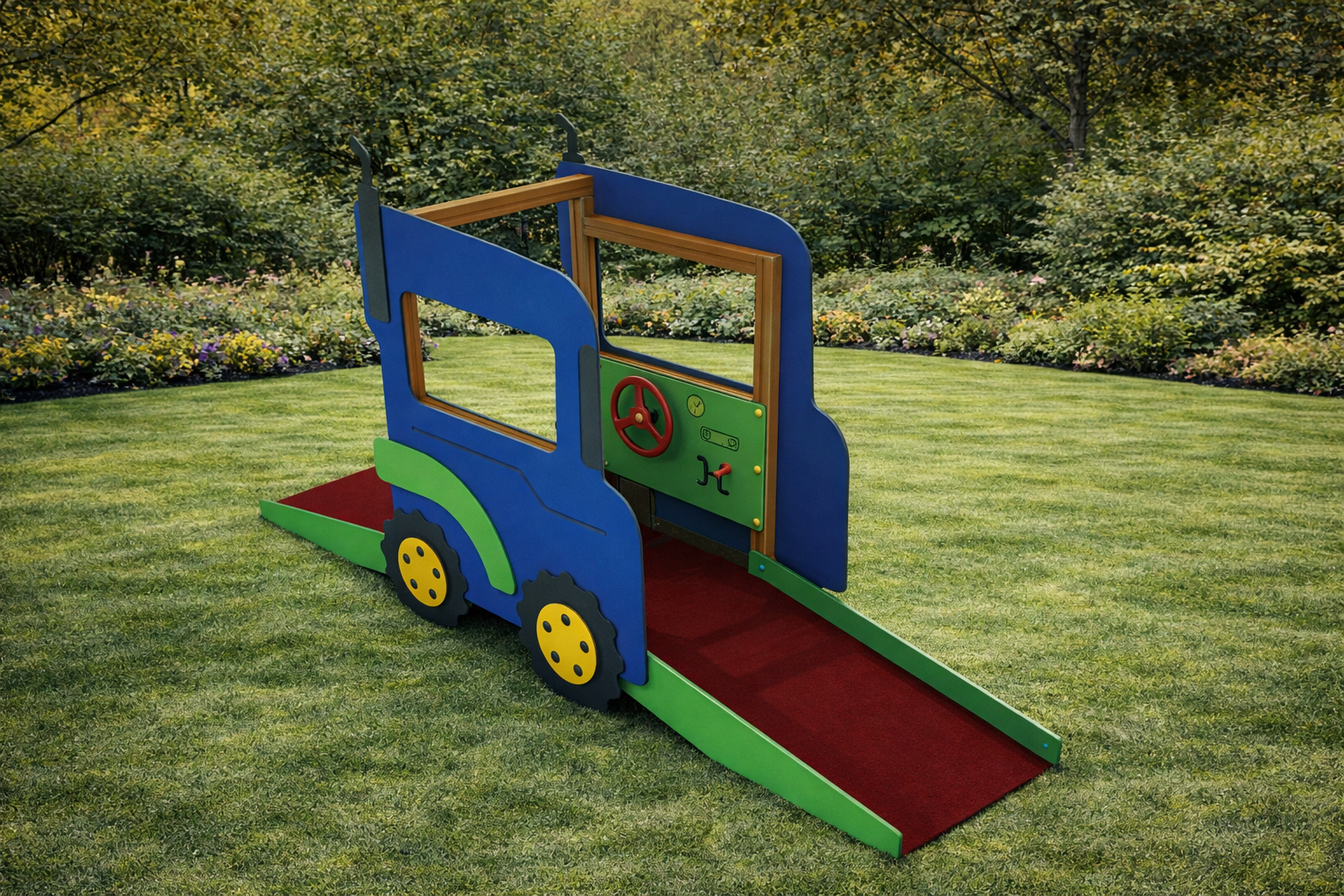 El modelo Spyder ha sido proyectado para transformar las zonas de juego convencionales en circuitos temáticos de alta gama. Su imponente presencia visual no solo atrae a los niños, sino que funciona como una plataforma de comunicación y aprendizaje social. Es el complemento ideal para combinar con otros elementos de transporte (como biplanos o trenes), creando un parque narrativo que estimula la creatividad de los más pequeños en entornos de seguridad certificada.