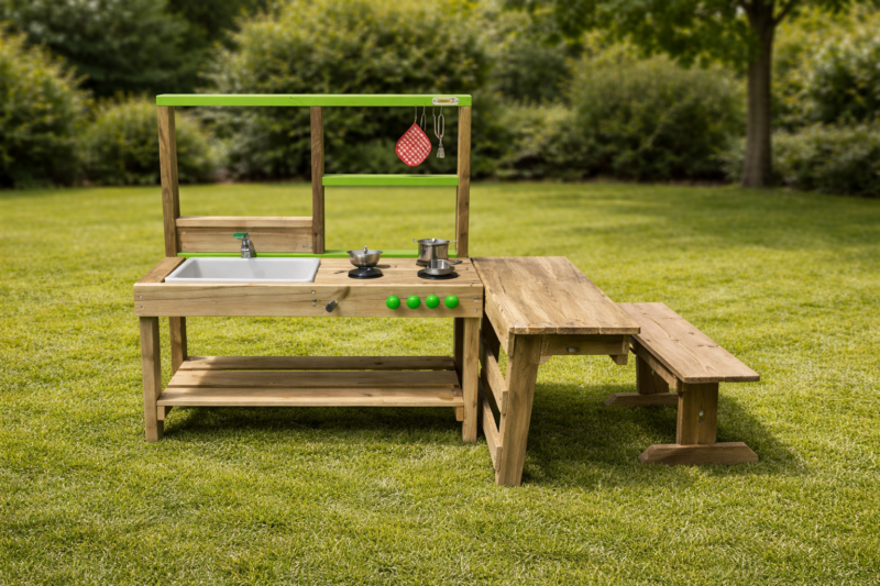 Cocina de Madera Exterior MSA-26 con Mesa y Banco | Montessori