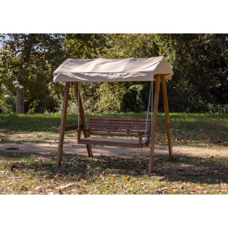 ¡Tu refugio privado bajo el sol! El Columpio MB-2 eleva la experiencia del balancín tradicional gracias a su techo de lona beige resistente a los rayos UV. Fabricado en madera de pino maciza con tratamiento estructural, este modelo de dos plazas ofrece un balanceo suave y seguro soportado por cadenas de acero galvanizado. Su diseño compacto de 1.30 m de asiento lo hace ideal para compartir momentos íntimos en pareja o con los más pequeños, soportando hasta 200 kg de peso. Es la pieza clave para quienes buscan confort, sombra y una estética rústica refinada que resiste perfectamente la humedad y el sol intenso.
