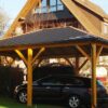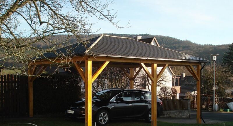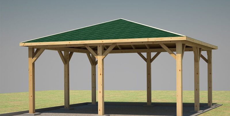 ¡Combine elegancia clásica y resistencia industrial! La PGL-5 es un cobertizo abierto premium fabricado en madera laminada de alta estabilidad, diseñado para soportar las condiciones climáticas más exigentes. Su característica principal es su tejado a dos aguas con cumbrera a 3,25 m, que ofrece una ventilación y amplitud superiores a los modelos estándar. Con postes de 14 x 14 cm y un techo machihembrado de 20 mm, esta estructura garantiza una base sólida para aparcamiento de vehículos, áreas de barbacoa o zonas de trabajo exterior. Se entrega en madera natural sin tratar, lista para ser personalizada con el acabado que mejor se adapte a su entorno.