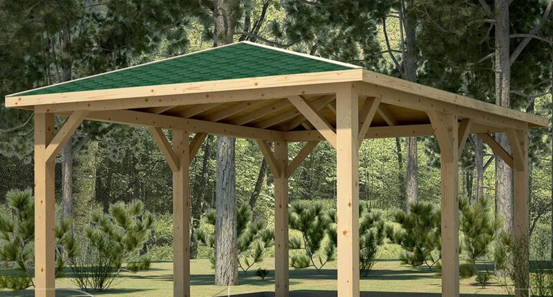 Estructura de Madera Laminada PGL-5 – Pórtico con Techo a Dos Aguas y Postes de 14 x 14 cm