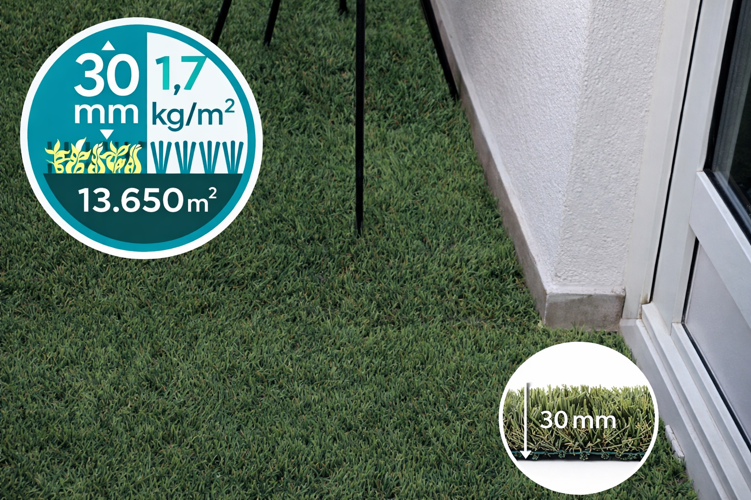 Mantenimiento Zero: Olvídate de la cortadora de césped, el gasto de agua y los productos químicos. Tu jardín lucirá perfecto los 365 días del año con un esfuerzo mínimo.