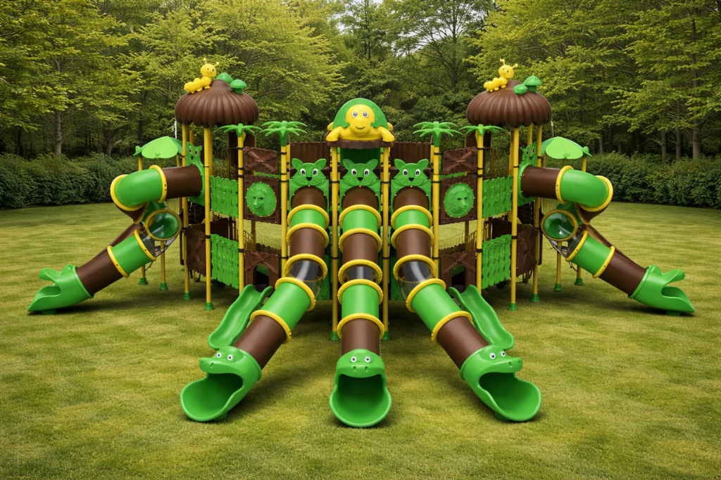 Toboganes Multiforma: Desde descensos rápidos en espiral hasta túneles cerrados con estéticas de animales, cada salida ofrece una experiencia sensorial diferente.