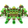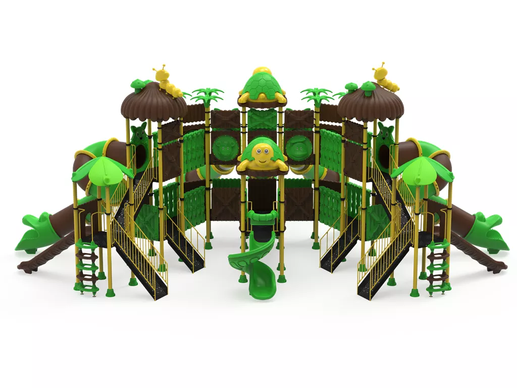 El Modelo PSI-29 representa el máximo nivel en ingeniería de parques infantiles temáticos. Su diseño no solo busca el entretenimiento, sino la creación de un entorno inmersivo donde los colores tierra, verdes y amarillos integran la estructura con la naturaleza. Con una altura máxima de 5,5 metros, ofrece un desafío vertical y horizontal que mantiene a los niños activos, seguros y comprometidos con el juego cooperativo.