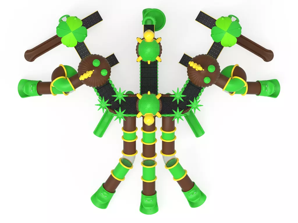 ¡Bienvenidos a la expedición definitiva! El Modelo PSI-29 es una impresionante megaestructura temática diseñada para transformar cualquier espacio en una selva tropical de aventura infinita. Con 14,5 metros de largo, este complejo modular interconecta múltiples plataformas, toboganes cerrados tipo túnel, rampas y escaleras temáticas. Fabricado con materiales de alta tecnología como acero galvanizado anticorrosivo y LLDPE rotomoldeado, ofrece una resistencia excepcional al uso masivo y al clima extremo. Es la solución líder para proyectos que requieren alta capacidad (35-40 usuarios) y el cumplimiento estricto de la normativa europea de seguridad para uso público.